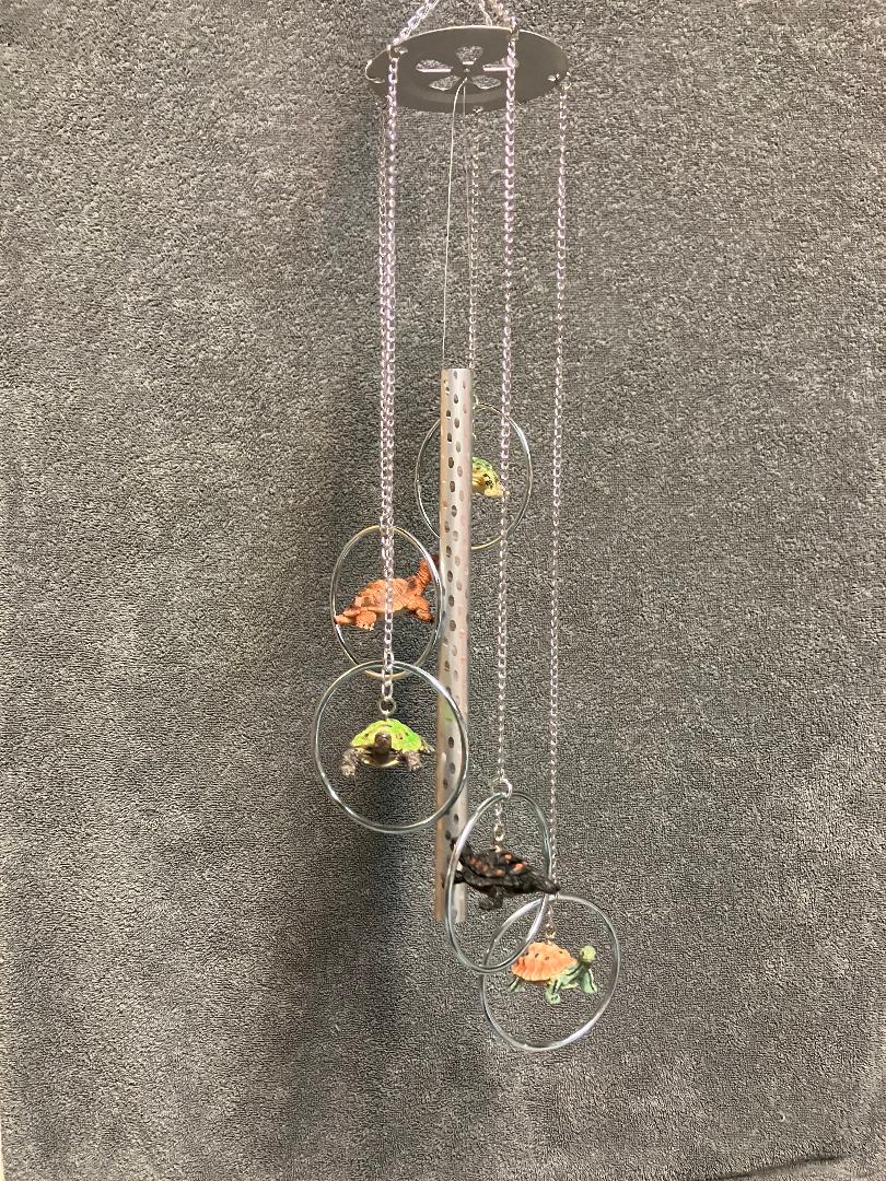 Turtles are acrylic and chimes are aluminum 24″ long. Call 402-880-9981 for availability +6.00 shipping
